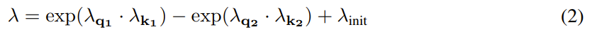 其中 W^Q、W^K 、W^V 是參數,λ 是可學習的標量。為了同步學習動態(tài),將標量 λ 重新參數化為: