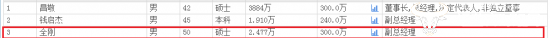 全剛的年薪比另一位副總經(jīng)理錢啟杰高了60萬,和董事長(zhǎng)兼總經(jīng)理昌敬一樣,可見他的能力還是十分優(yōu)秀的。