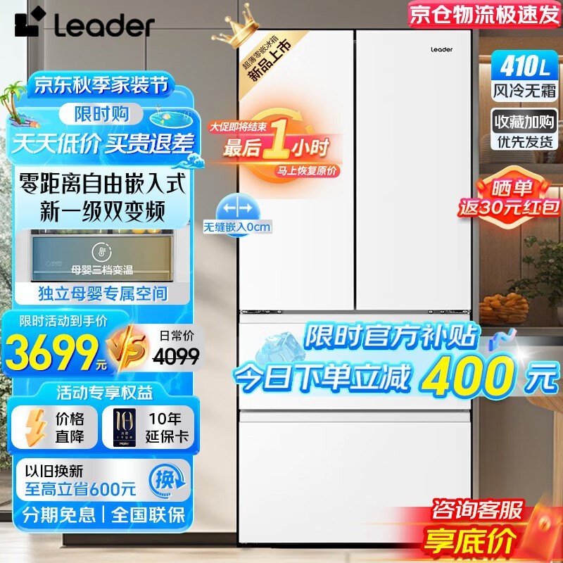 ?海爾智家410L超薄法式四門冰箱2879-優游風采