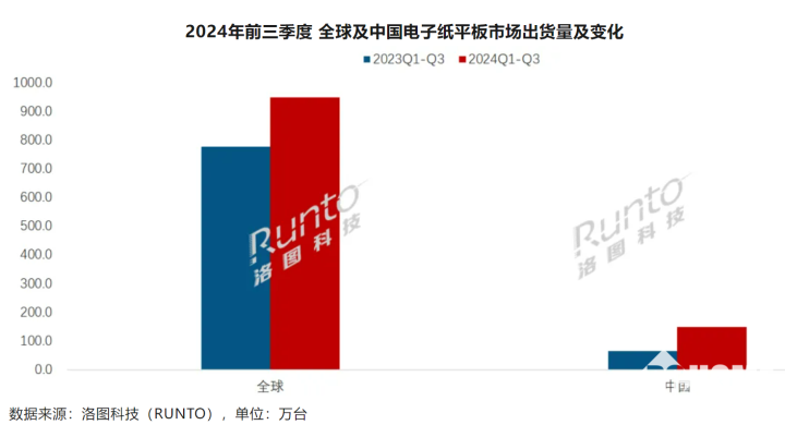 全球電子紙平板市場整體依舊保持較為穩定的發展勢頭,歐美發達國家人群具有較好的閱讀習慣,全球市場需求依然集中于閱讀器產品。與此同時,伴隨著中國市場彩色化進程的加快,海外市場也呈現出了彩色化發展加速的勢頭,Kindle為代表的品牌于近期推出了各自的彩色電子紙閱讀器新品。2024年前三季度,全球電子紙平板出貨量為948.4萬臺,同比增長22.1%。洛圖科技表示中國市場的發展是強勁的,遠好于全球大盤。中國市場前三季度的出貨量為148.2萬臺,同比增長128.4%。大部分的銷量仍集中于線上,特別是內容電商的爆發式增長拉高了線上渠道的占比。前三季度,中國線上全渠道的電子紙平板銷量達到了111.8萬臺,占整體市場的83.5%。